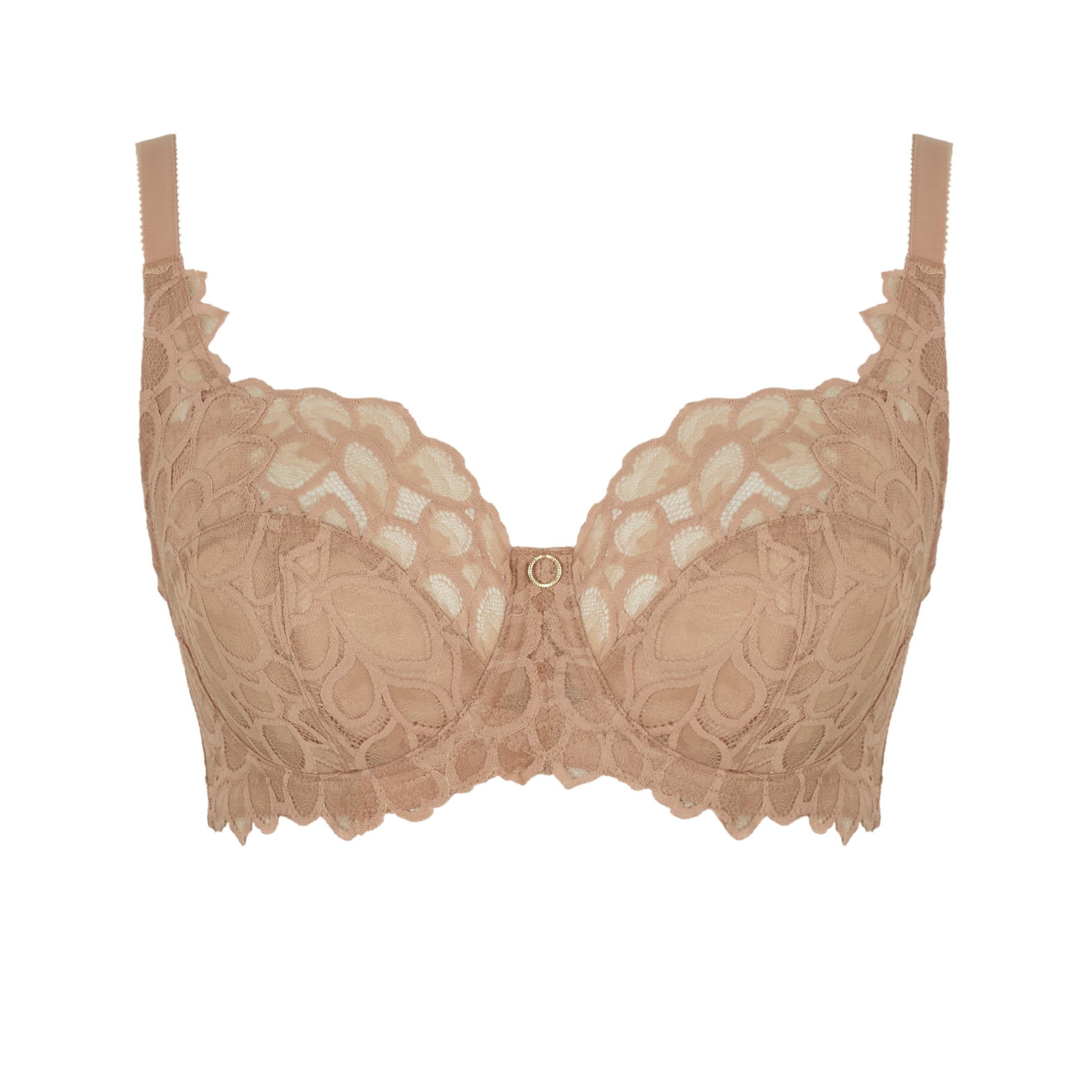 The Panache Allure Full Cup Bra in Honey is the perfect blend of everyday support and stunning lace detail. Designed with Panache’s signature lift and shaping, this bra features a sheer leaf-patterned lace overlay on a soft beige lining for a sophisticated, feminine look. The full cup design provides excellent coverage, while power mesh wings offer a secure and flattering fit. Ideal for daily wear, this underwired bra gives you the confidence and comfort you deserve with a touch of luxury.