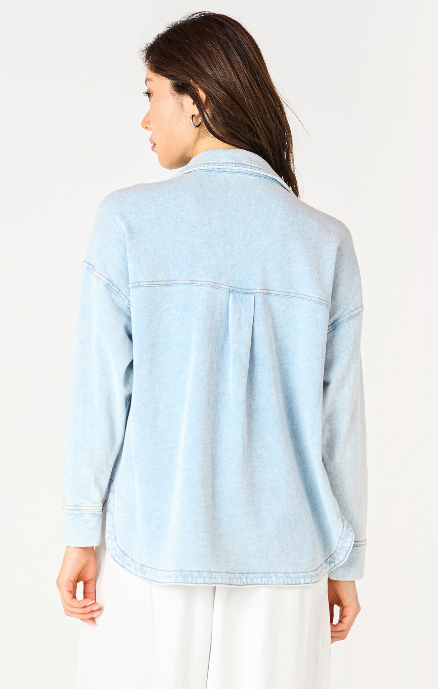 This jacket has a soft, flexible feel with a relaxed silhouette. For those between sizes, we suggest sizing down for a slightly closer fit. It's a great transitional piece—light enough for warmer months, and ideal for layering year-round. Try it over a fitted dress and sneakers or pair it with leggings for an off-duty look that still feels polished.