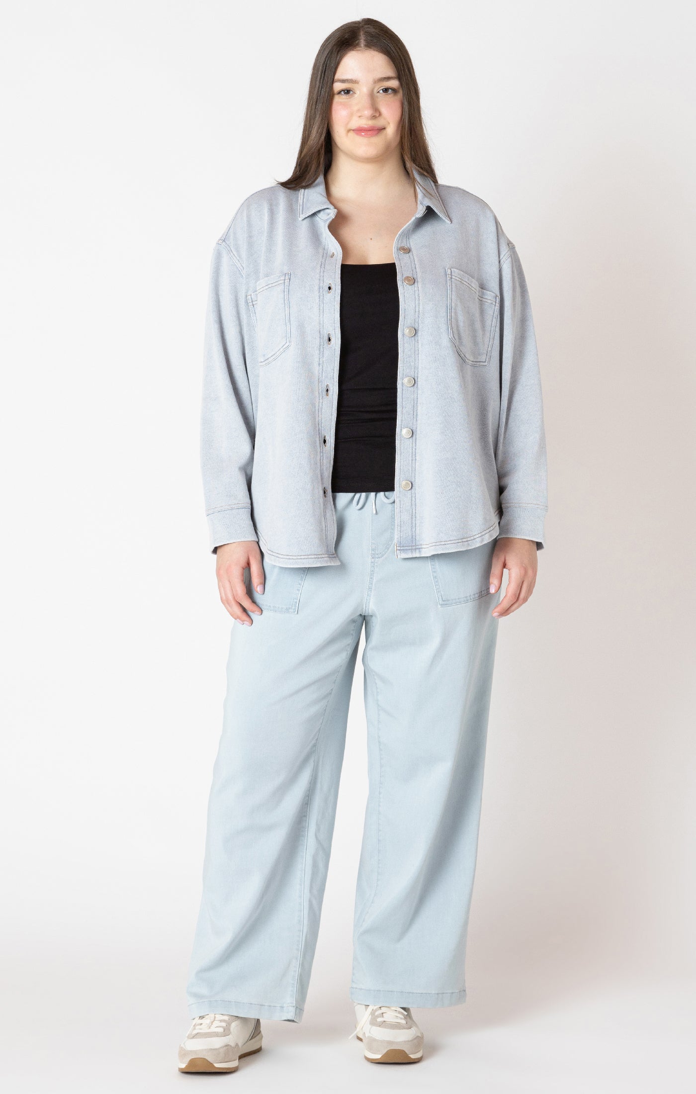 The Plus Long Sleeve Knit Denim Jacket by Dex is your go-to for casual layering with elevated comfort. Designed with a soft knit denim blend, it delivers the timeless look of washed denim with the stretch and ease of your favorite cardigan. A relaxed fit makes it effortless to style over dresses, tees, or jeans—perfect for everyday wear.