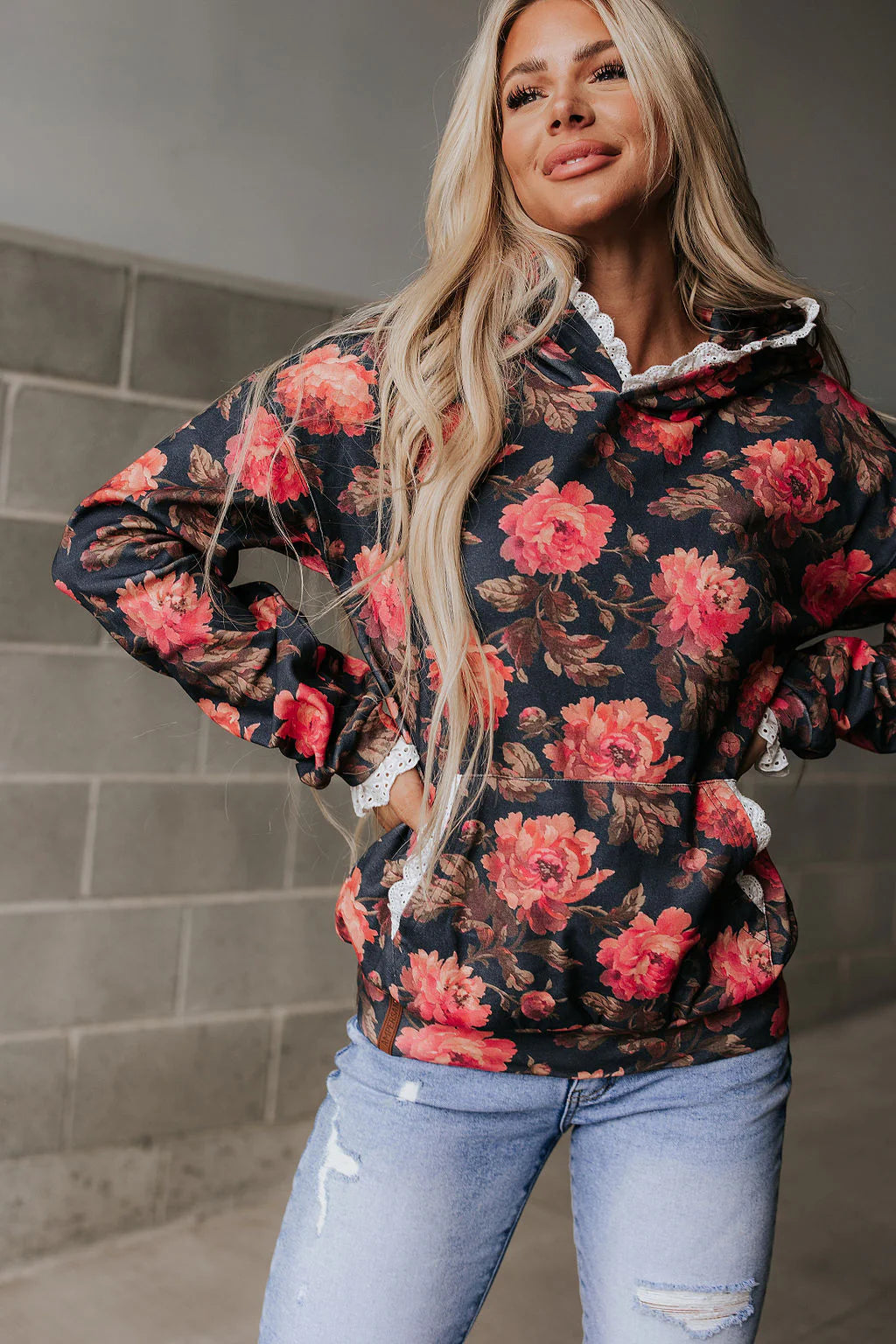 Introducing the University Hoodie - Goodnight Kiss! This cozy, triple stretch fabric hoodie features delicate lace details and a relaxed fit. With an all-over floral pattern, it's a guaranteed head-turner and heart-stealer. Make a statement and stay comfortable in this must-have hoodie.