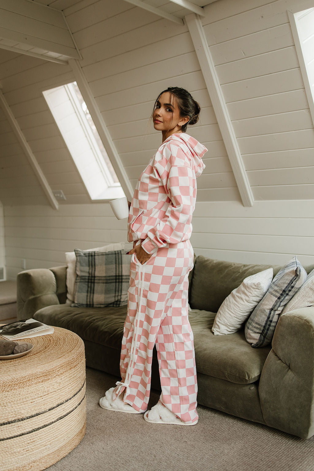 - Allover pink and white checkered pattern