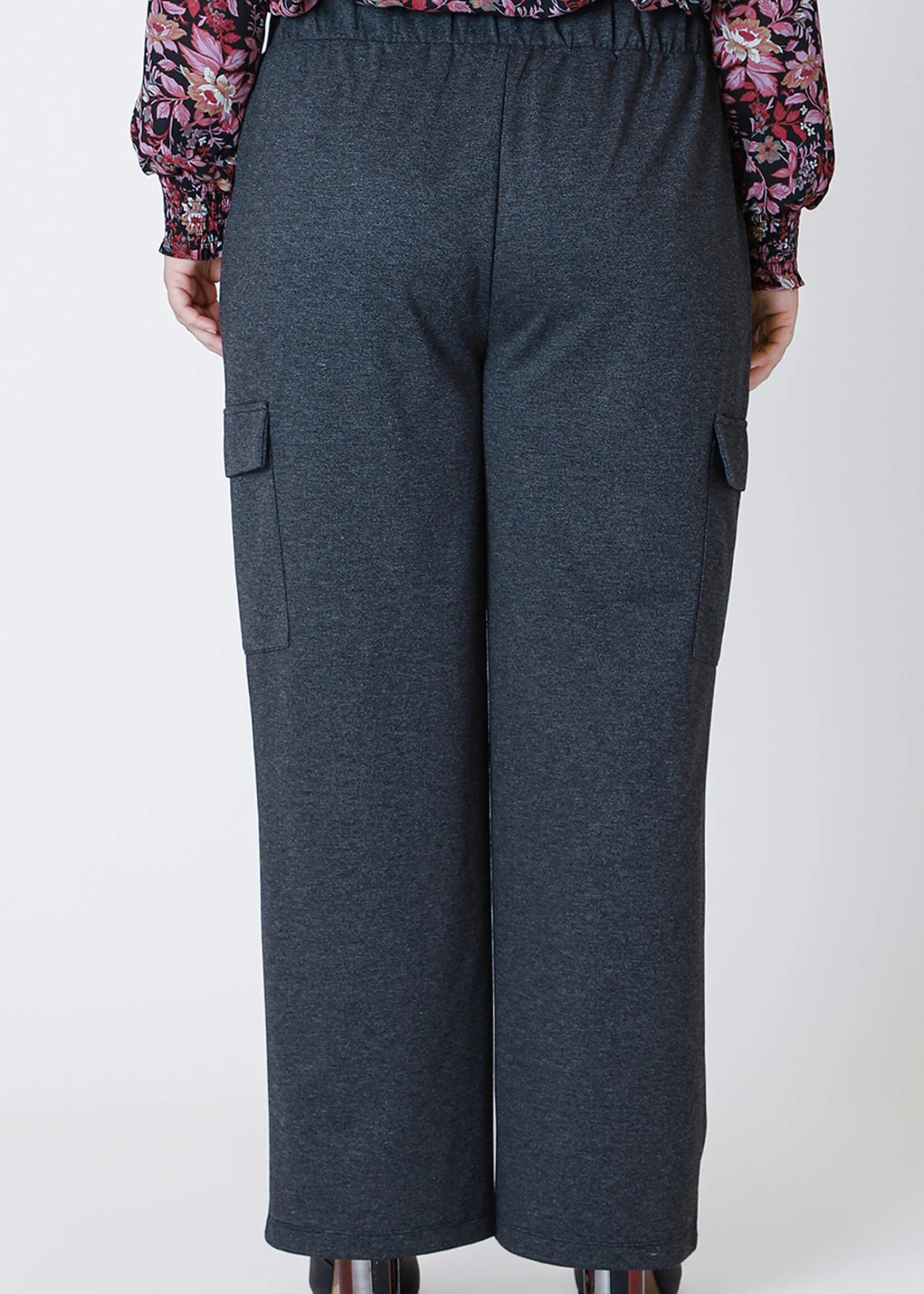 Wide-Leg Knit Cargo Pants – Charcoal Heather (Plus Size)